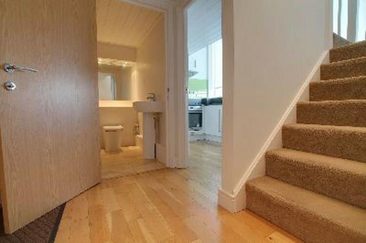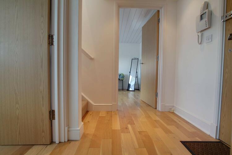With oak wooden floor, security intercom to main communal door, inset ceiling downlighters, stairs leading to upper bedrooms.