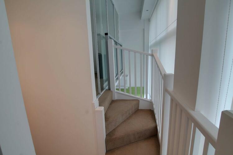 With seating area, access to a resident gym, stairs and lift leading to apartment 304.