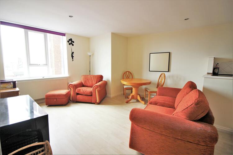 A spacious two bedroom top-floor apartment, featuring open-plan living space and with a convenient town centre location.