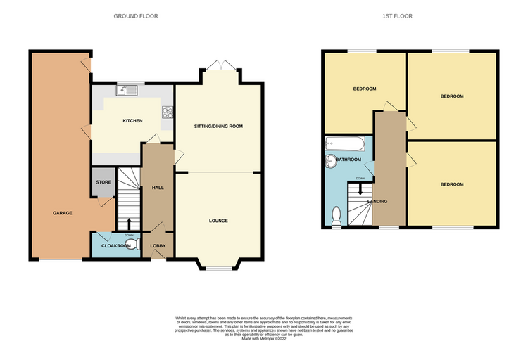 A large garage with up and over door to the front along with personal door to the rear garden. The garage also contains a brick store and further toilet with w.c.