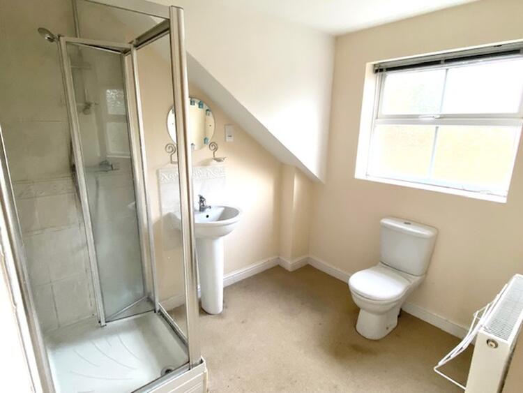 With uPVC double glazed window to the rear elevation. Comprising a shower cubicle with low level wc, pedestal wash hand basin, tiling to walls, extractor fan, shaver point, radiator and built in cupboard.