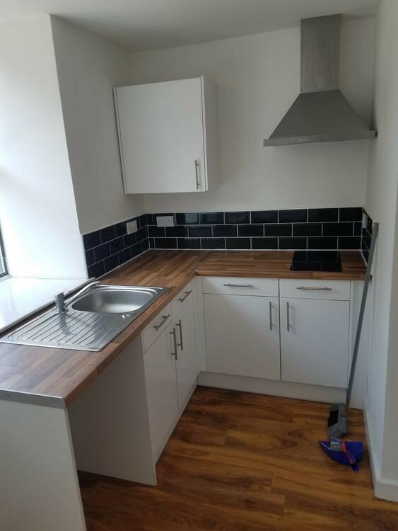 With fitted kitchen with electric hob and extractor over, stainless steel sink unit, roll top work surfaces. Space for fridge/freezer, 2 x windows and spaces for bed and furniture.