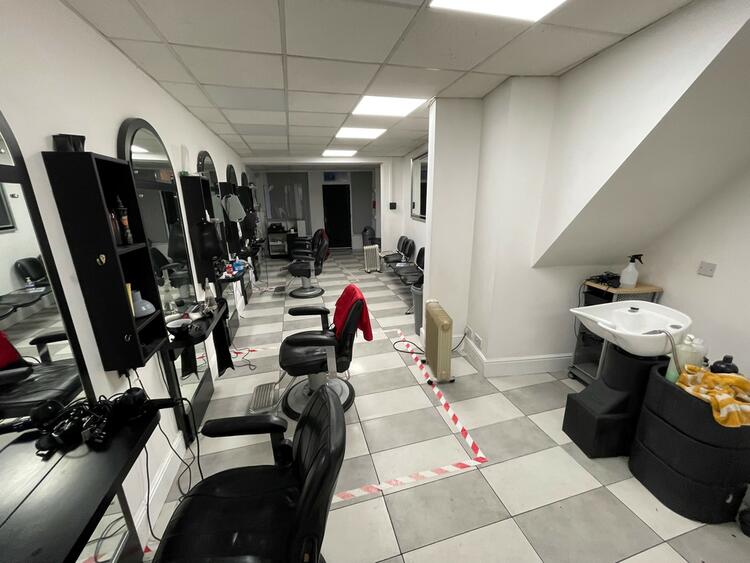 Salon, rear treatment room, kitchenette, stores and WC.