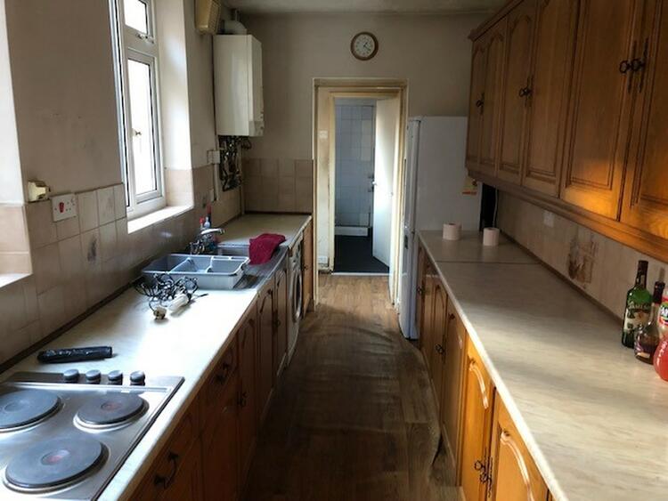 With a range of base and wall units, sink unit, built in oven, hob and extractor. Wall mounted combi boiler and two windows to the side aspect.