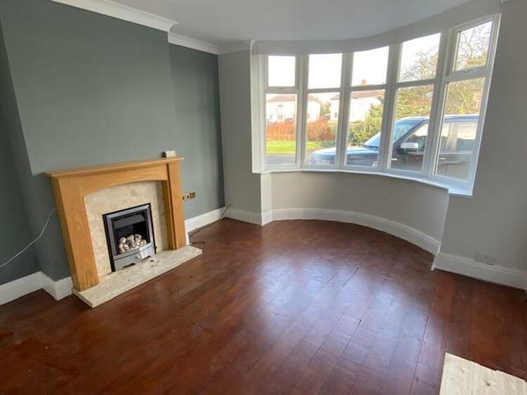 With bay uPVC double glazed window to the front elevation, gas fire incorporating a coal living flame effect with a marble in-situ back and hearth, wood surround and mantle, television aerial lead and central heating radiator.