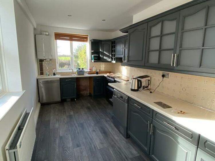 With uPVC double glazed window to rear and side elevation and door to side. The fitted kitchen comprises a comprehensive range of wall mounted cupboards with matching base units, drawers, preparation surface, sink and drainer with mixer tap and splashback tiling, cooker point, plumbing for washing machine and dishwasher, wall mounted Worcester combination boiler and central heating radiator.