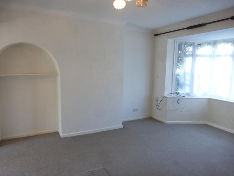 Main living area /lounge with bay window and chimney breast with arched alcove to the side. Central heating radiator, double glazed bay window and double glazed doors into the rear reception/dining area