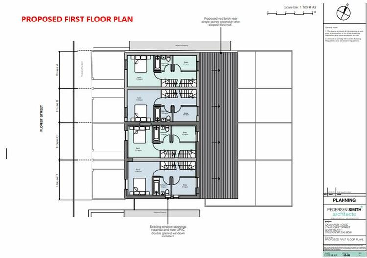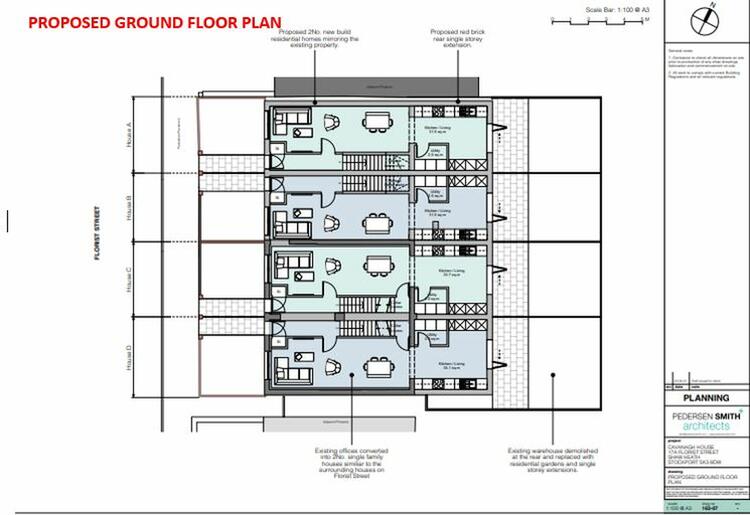 Planning permission has been approved for the redevelopment of the site comprising partial demolition and conversion of existing building to provide 2 no. dwellings, erection of 2 no. dwellings, together with associated landscaping. The proposal will involve the conversion of the former dwellings on the site back to residential properties, and the demolition of the existing single storey warehouse element and the construction of two further dwellings. In total four new dwellings will be provided on site in a terrace format. The accommodation within the properties will be spread over two floors plus roof space, whilst the converted dwellings will also have basement space. Further planning information can be found in the legal pack or direct with Stockport Council planning department.