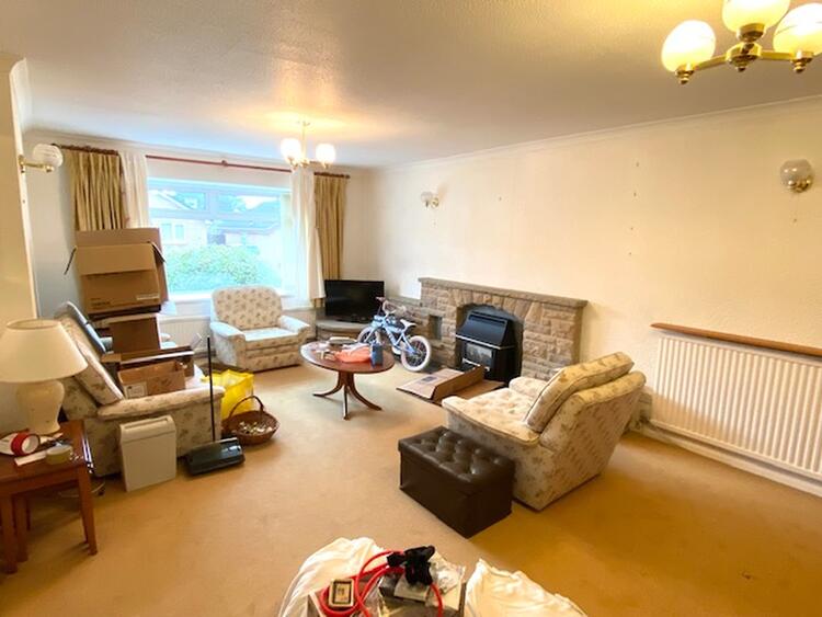 With uPVC double glazed window to the front elevation, gas fire with slate hearth and stone surround, coving to ceiling, television point and central heating radiator.