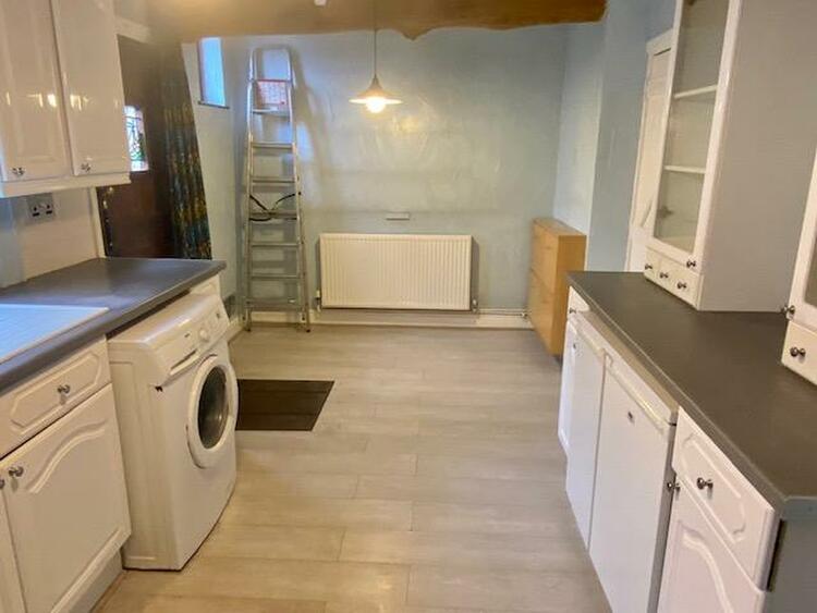 17ft 10 x 9ft 3 - Complete with a range of matching units and cabinets with complementary work surface over and inset sink with drainer. Fitted with a range of integrated appliances. Space for a dining table and chairs. Double glazed window overlooking the rear garden and wooden stable style door with a decorative stained glass window believed to date back to 1930s.