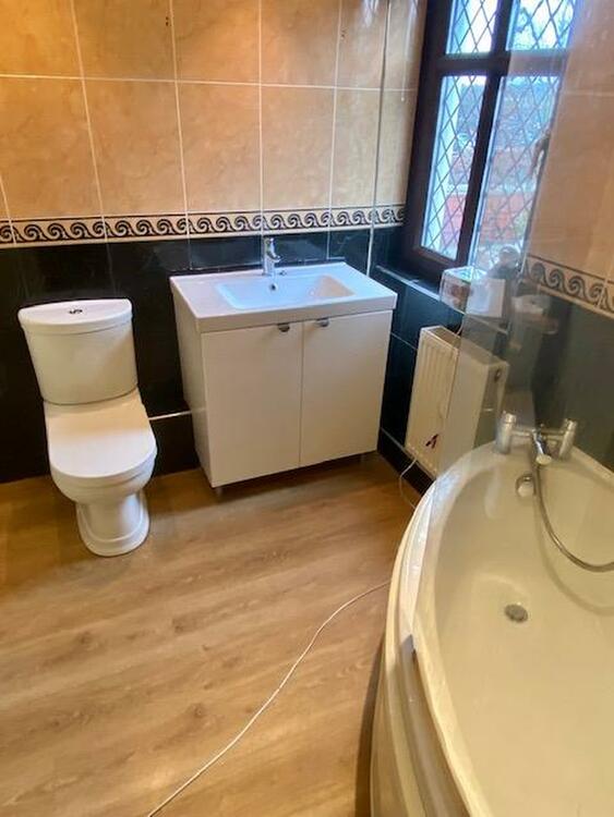 6ft x 8ft 6 - Complete with corner bath, low flush wc, wash hand basin and window to the rear elevation.