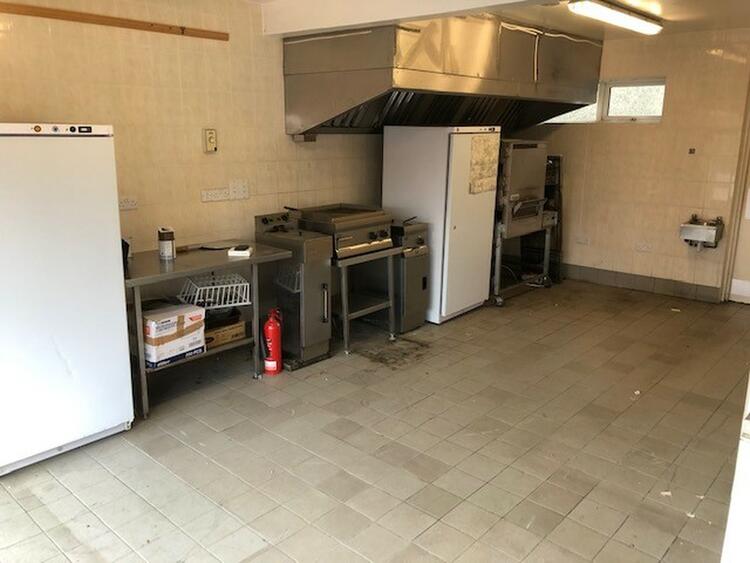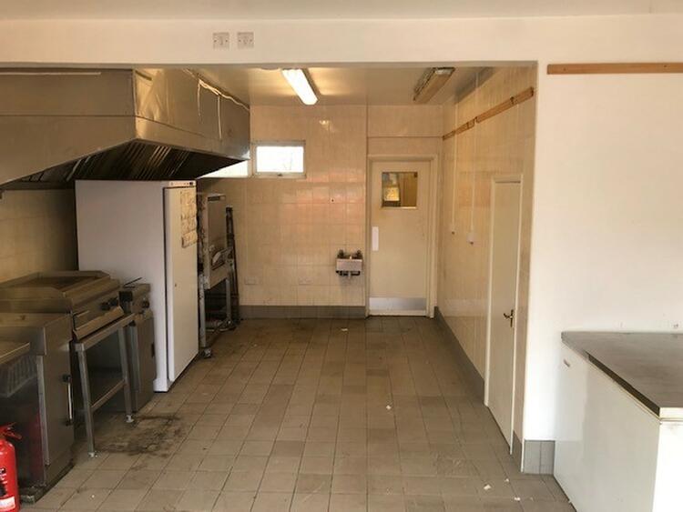 With window and door to the front aspect. Strip lighting and tiled flooring. Large industrial extractor unit.