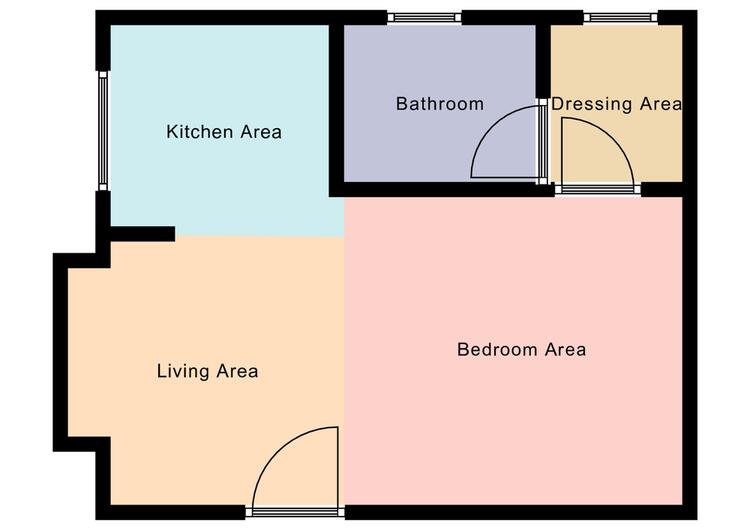In brief the accommodation comprises; Ground floor entrance from communal hallway with stairs leading to the first floor. Entering the property there is a kitchen area, living/bedroom area, a separate dressing area with sink and the bathroom. To the side of the property is off street parking in a communal parking area.