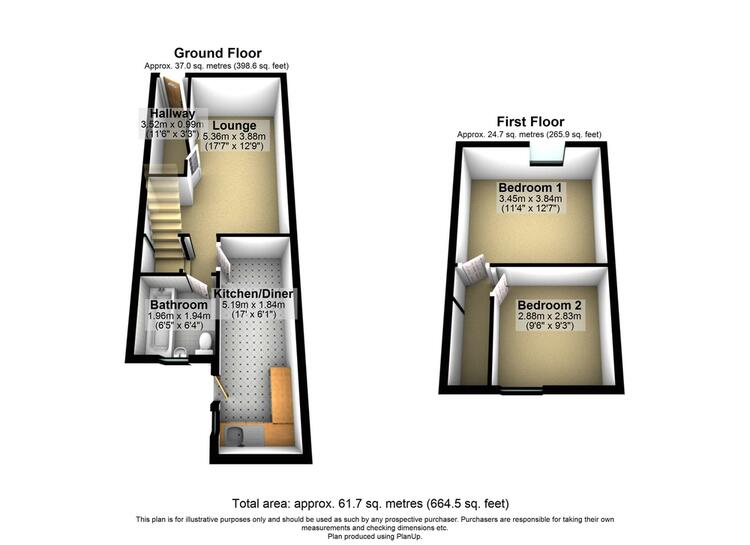 The property comprises of, entrance hallway, lounge, kitchen/diner and ground floor family bathroom. The two bedrooms are on the first floor.