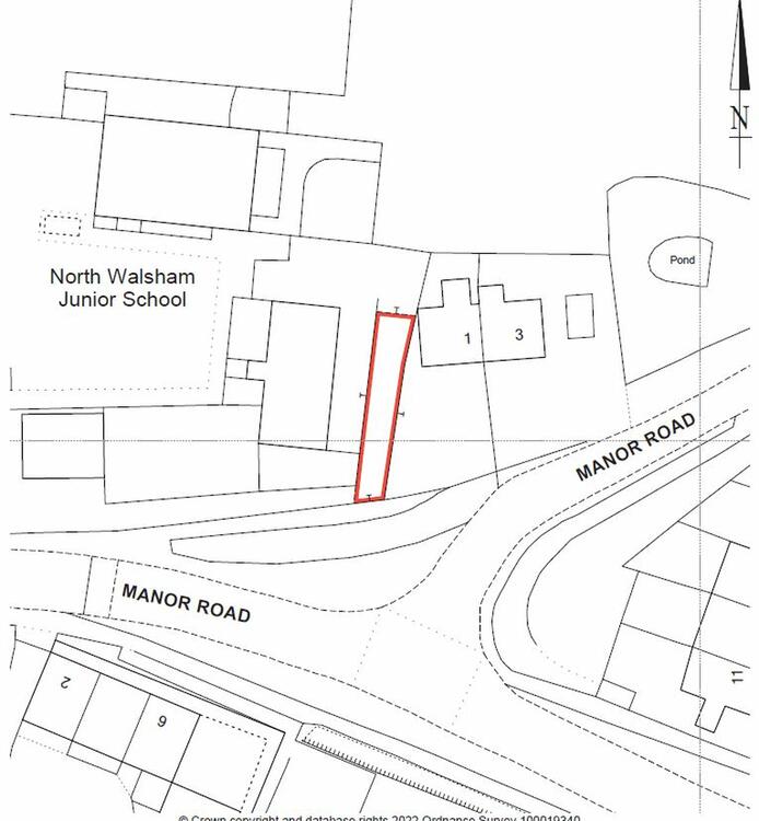 A rectangular shaped parcel of land located adjacent to 1 Manor Road, North Walsham.