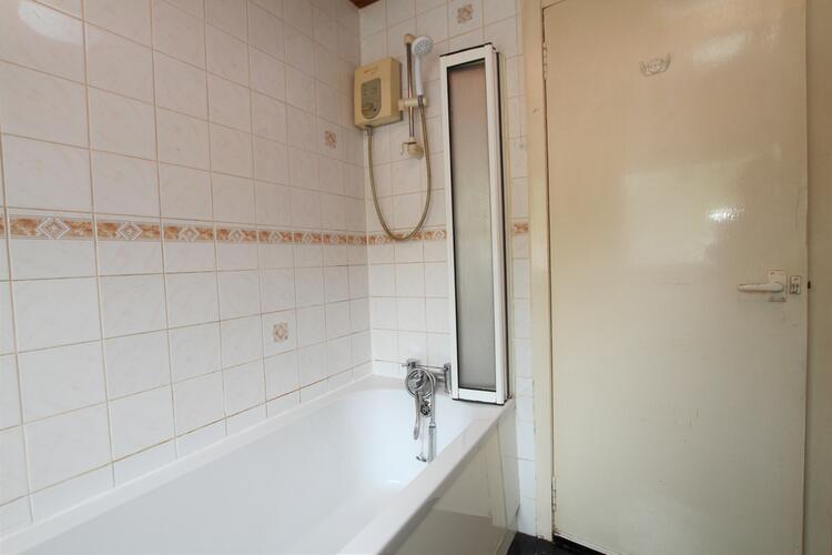 Family bathroom with electric shower over bath, wc and