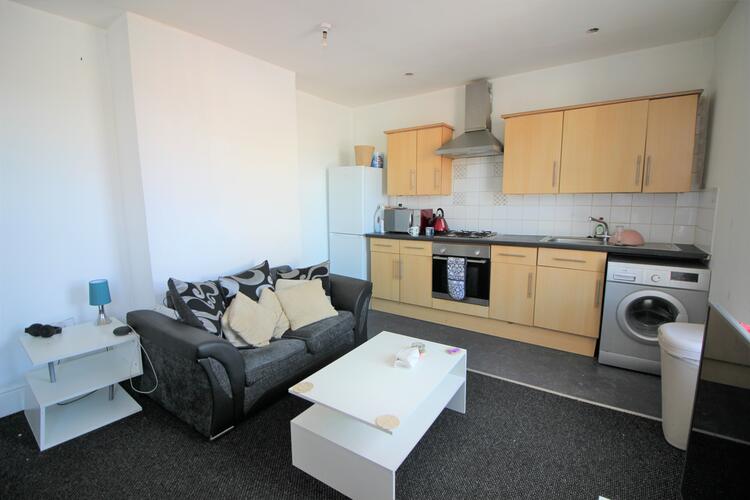 Open-plan living space incorporating a good size lounge with kitchen area. Two windows to the front aspect.