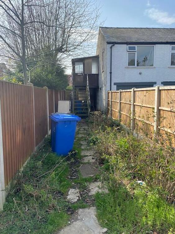 The property is set back from the road and is approached via a generous sized pathway/garden area with the metal staircase leading to the first floor.