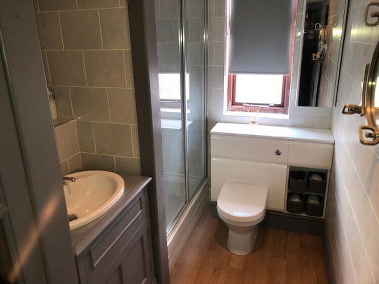 With low flush w/c. wash hand basin and large shower cubicle. Window to the rear aspect.