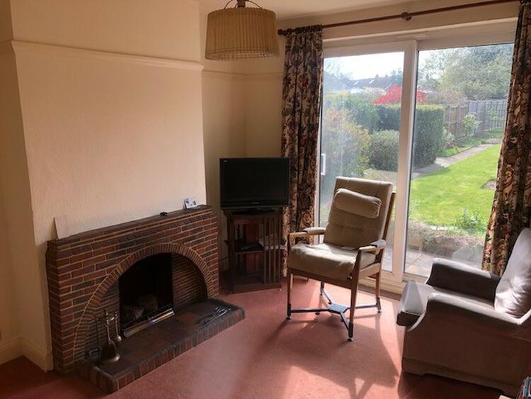 With open grate fireplace, radiator and patio doors opening out onto the rear garden.