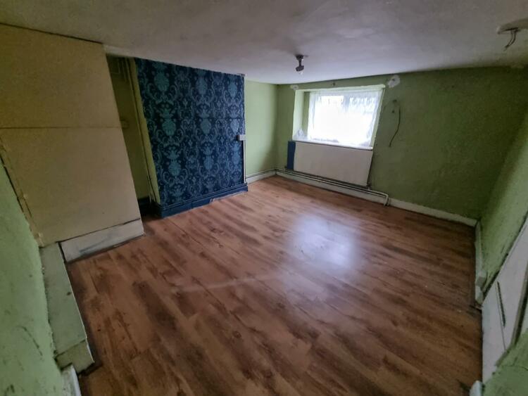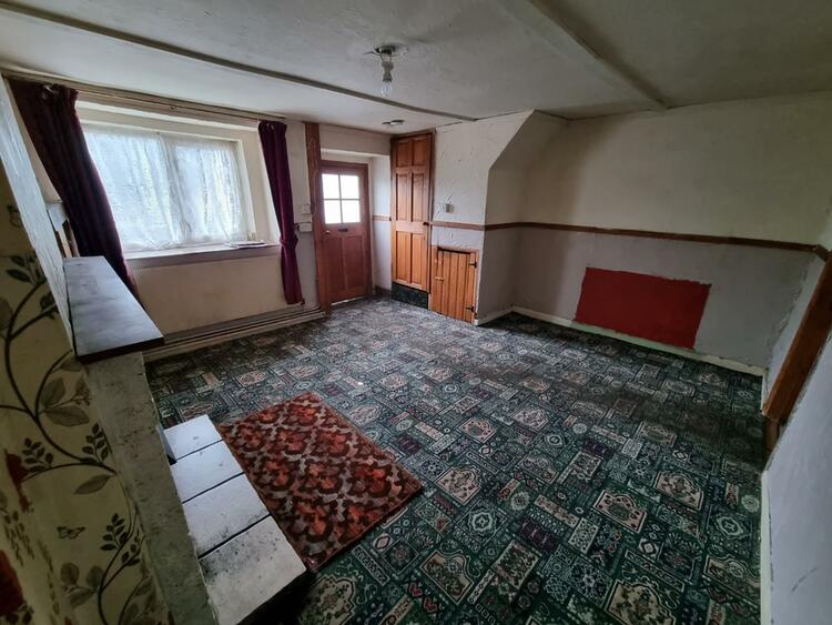 A good sized room with a front aspect single glazed window overlooking The Hill. With a brick built fireplace with cast iron fire, small under-stairs cupboard and a wooden door which opens to an enclosed staircase. A second wooden door leads into the: