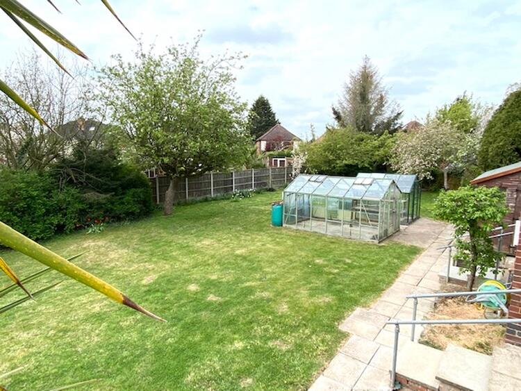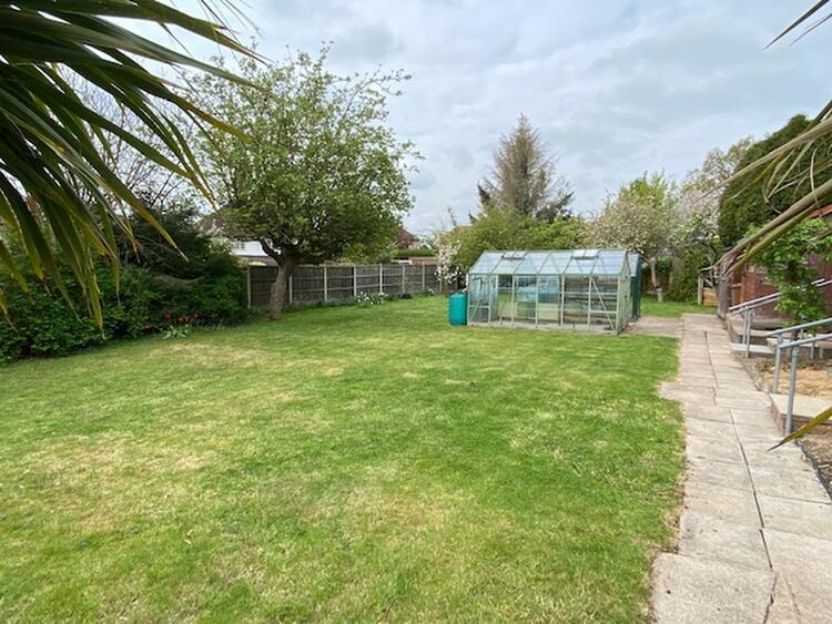The property is set back from the road with a low maintenance fore garden and hard standing space for several vehicles. There is side gated pedestrian access leading to what is undoubtedly the saleable feature of the property being the large enclosed rear garden which is mainly lawned with a range of specimen trees offering a certain degree of privacy. The rear garden is south facing and has a patio area off from the dining room with steps leading down to a pathway where there are two greenhouses, one metal shed, two timber sheds the larger of which has power and there is access to the integral garage - 16ft 5 x 9ft with up and over door, power and lighting, uPVC double glazed window and door to the rear elevation. Please note there is potential for further extensions subject to the usual planning and building regulations. Prospective buyers must make all necessary independent enquiries in this respect for their specific, intended use prior to placing their bid, as this will be binding.