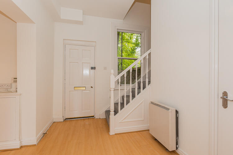 Window to front elevation, storage heater and access to:
