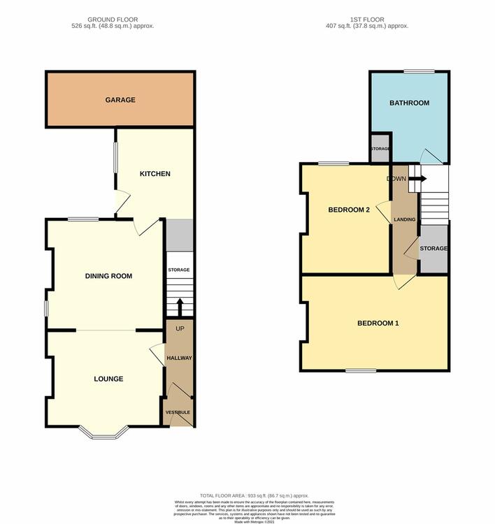 The property briefly comprises entrance vestibule, entrance hallway, lounge with bay window opening into dining room which is fitted with a log burner, fitted kitchen with integrated oven and hob, under stairs storage cupboard. Upstairs the property has a spacious bathroom with separate shower cubicle and two good sized double rooms, boarded and carpeted loft area offering a vast storage area can be access from pull down ladders from the loft hatch on the landing, front forecourt, enclosed rear yard and garage.