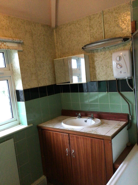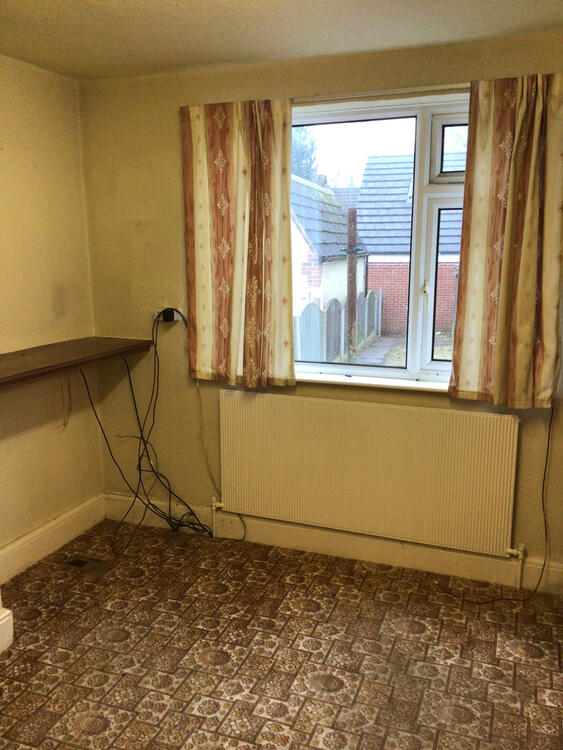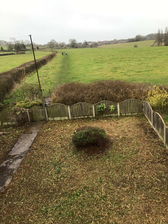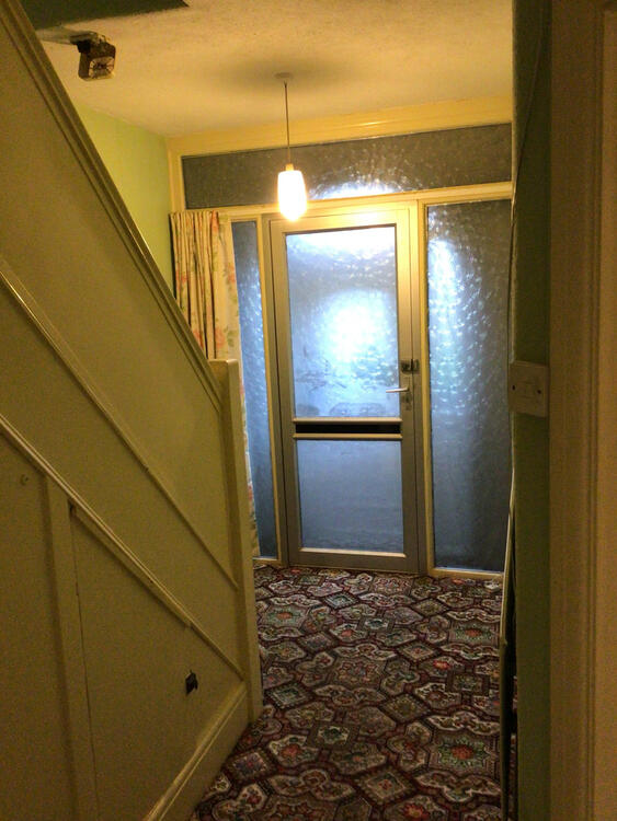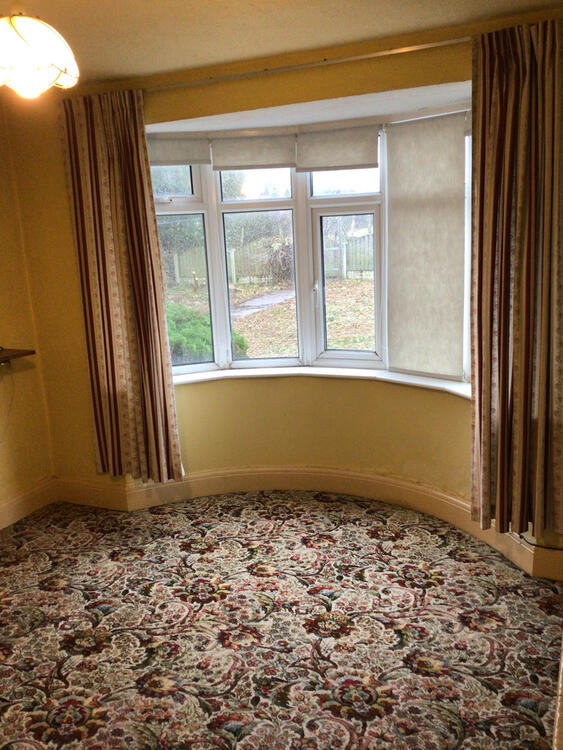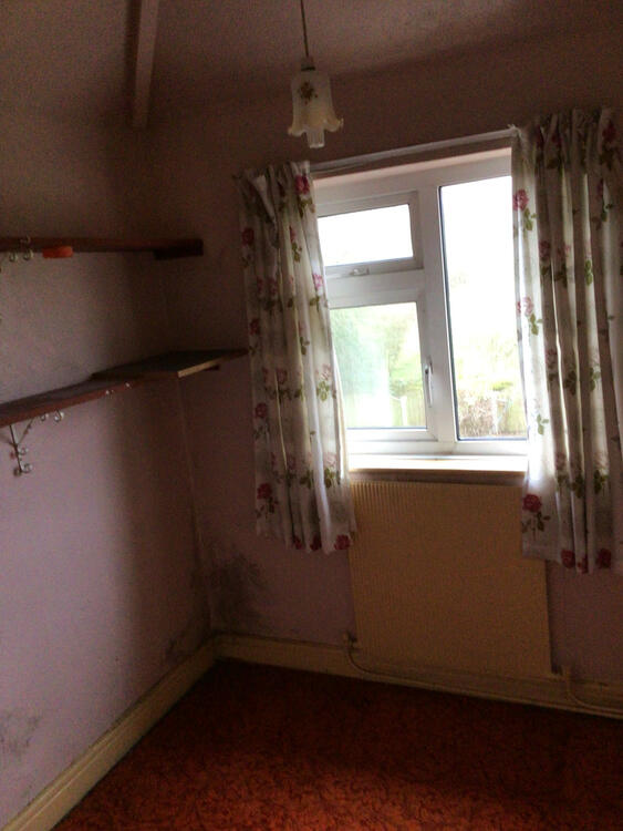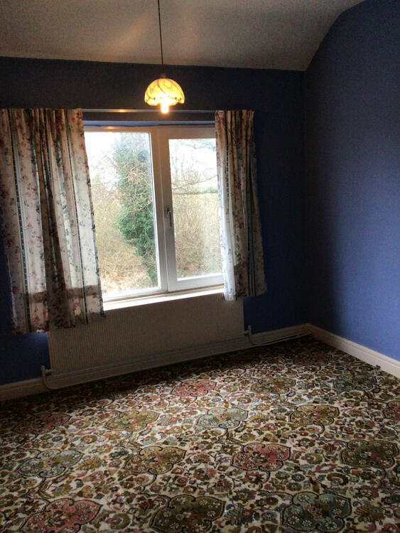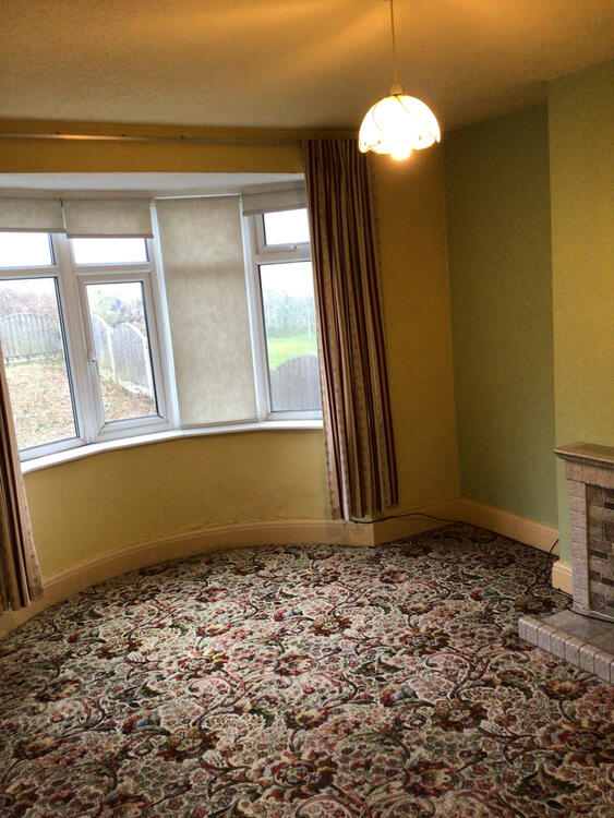 A three bedroomed semi-detached house in need of refurbishment backing onto open fields.