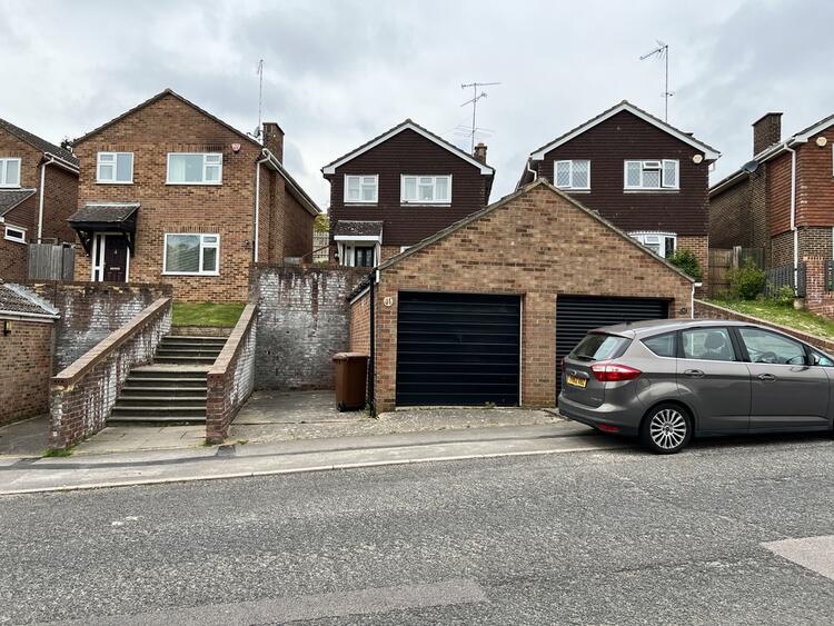 There is an elevated open plan garden at the front and a steep and stepped lawned garden at the rear. Single garage.