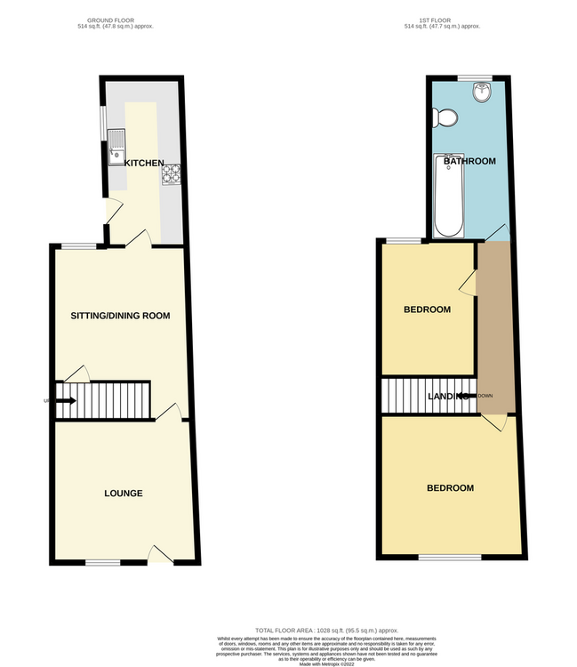 The property has a traditional layout comprising a lounge, dIning room, kitchen, landing, two bedrooms and bathroom.