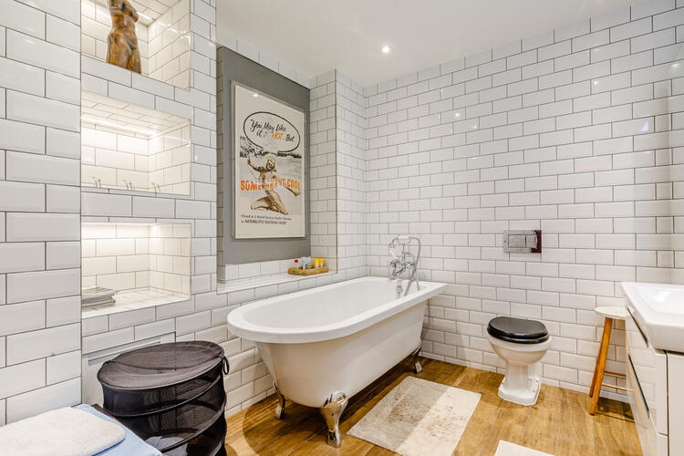 Lavishly presented throughout this large open plan style loft home benefits from wonderfully high ceilings, and is laden with many warehouse features including exposed brickwork, cast-iron pillars, and large wooden beams. Two good-sized bedrooms are each offered with bathrooms en-suite, in addition to a large family bathroom which is offered from an impressive hallway. A mezzanine/comfort hub sits atop one of the bedrooms, and a reading area has been created from large ledges that overlooking a private garden.