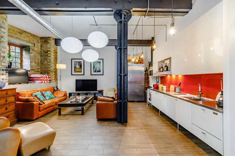 Bespoke loft-style apartment of 1,547sq ft with an array of characterful warehouse features and luxury finishes, on the banks of the Thames in the heart of Wapping.