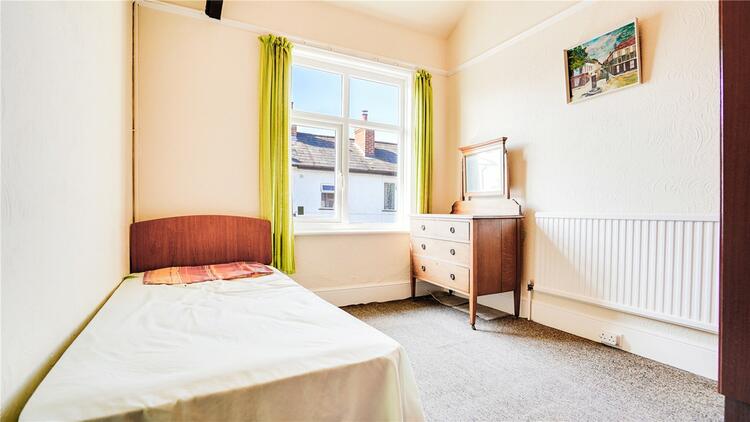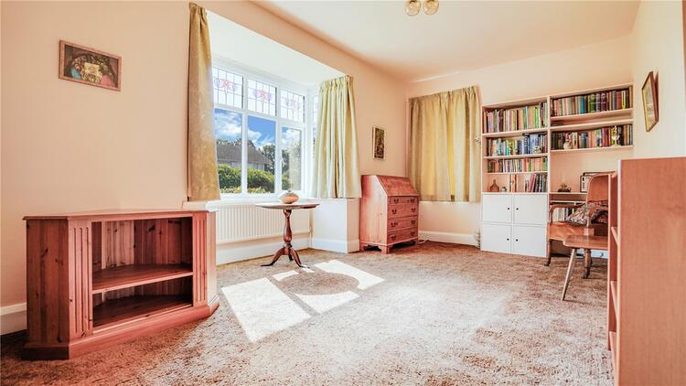 A spacious and light room benefiting from a bay window to the front and additional window to the side aspect, there are feature stained glass windows to the top. There are two gas central heated radiators and a ceiling light point.