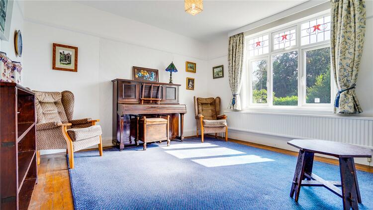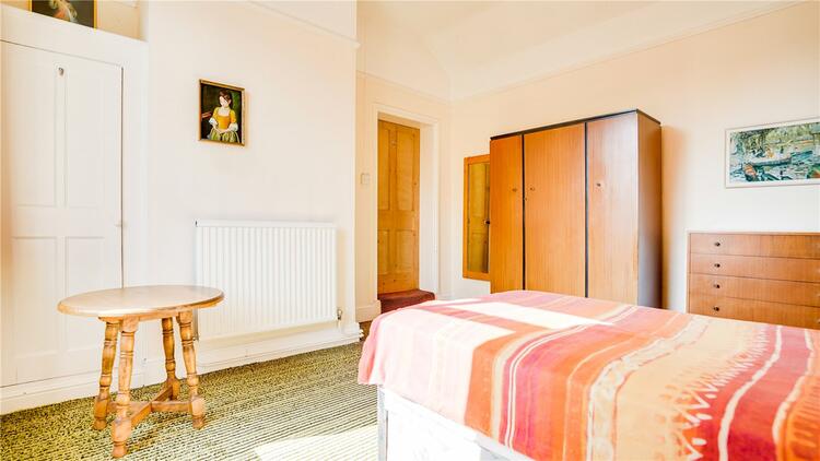 The second reception room has a large window to front aspect again with stain glass feature windows above, a gas central heated radiator, ceiling light point and original wooden flooring.