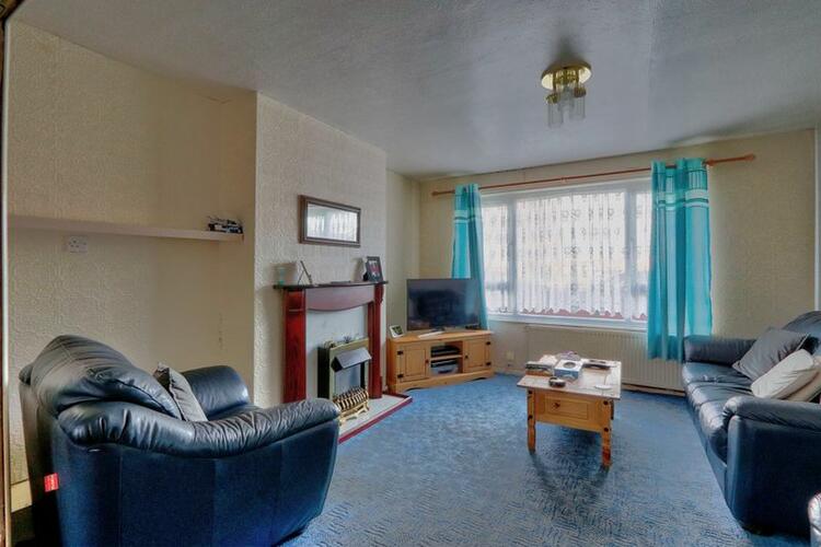 uPVC window facing the front elevation with a central heated radiator. A gas fire with surround. An open doorway leads into the dining room.
