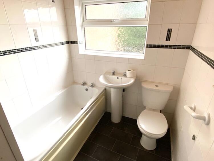 With uPVC double glazed window to the rear elevation. Fitted with a four piece suite in white comprising a panelled bath, separate shower cubicle, low level wc, pedestal wash hand basin, tiling to the walls, range of downlighters and chrome laddered heated towel rail.