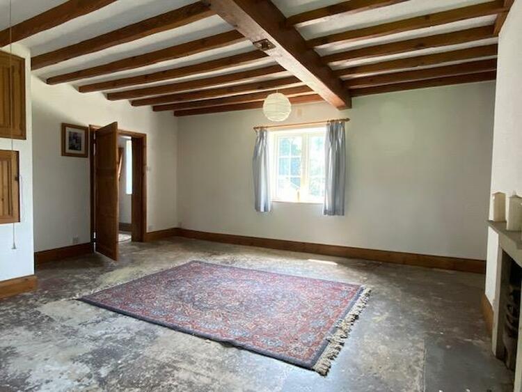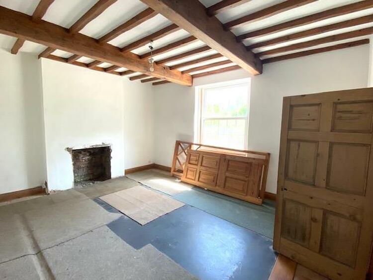 Measures 18 ft 1 into chimney recess by 14 ft 5, with a multi paned double glazed sash window to front elevation exposed ceiling beams open fireplace and an original six panelled door.