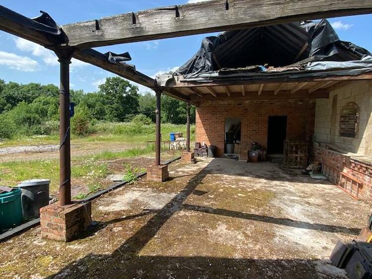 33 ft by 17 ft 6 with double folding doors. There is also an adjoining stable block, incorporating four stable rooms, along with a store measuring 32 ft 4 by 9 ft 3 and Tool Store measuring 40 ft by 15 ft 9 with an enclosed passage. Interestingly there is an adjoining brick built office, with entrance lobby, guest WC which measures 6 ft by 3 ft 2, office room which measures 23 ft by 10 ft with three UPVc double glazed windows. There is also a brick built dilapidated carport with storage and a block of six garages with timber double doors with extensive parking to the property with an in and out separate driveway.