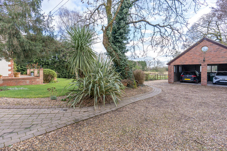 The property enjoys a beautiful south facing reargarden predominantly laid to lawn with a raised patio seating area directly accessible from the house and a range of shrubs and mature trees. A set of electronic gates from the front open onto a private driveway within the garden and lead to a double carport with boarded loft storage. The adjoining 2.29 acre (approx.) field is a haven for wildlife and comprises two large ponds, well stocked with fish. The gardens and adjoining land included with the property amount to approximately 2.47 acres (not measured).