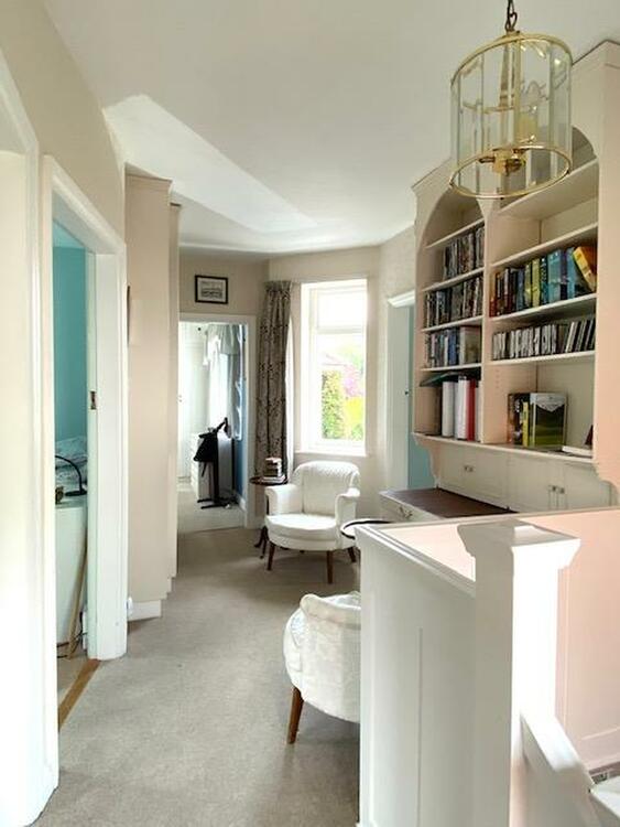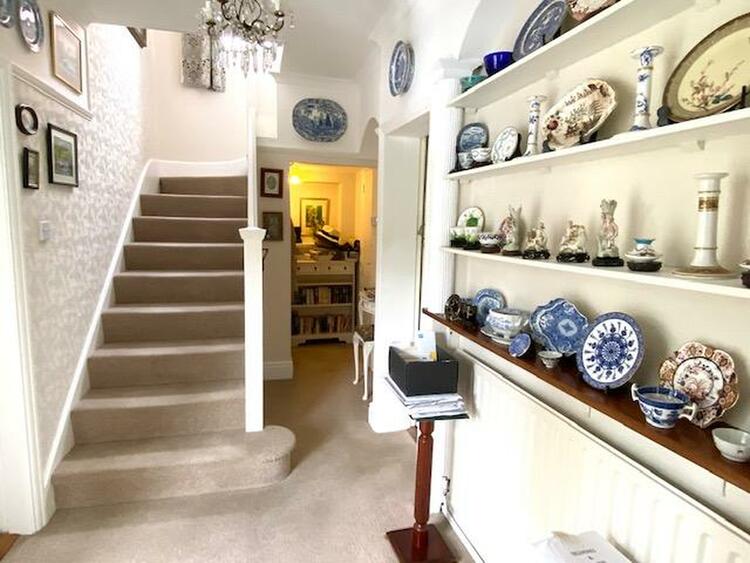 Entered by a stained leaded door to front with two side panel windows.