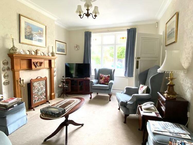 With window to front elevation, gas fire incorporating a coal living flame effect with a marble back and hearth with polished wood surround and mantle, television point, telephone jack point, coving to ceiling with ornamental ceiling rose, central heating radiator and opening through to garden room/study.