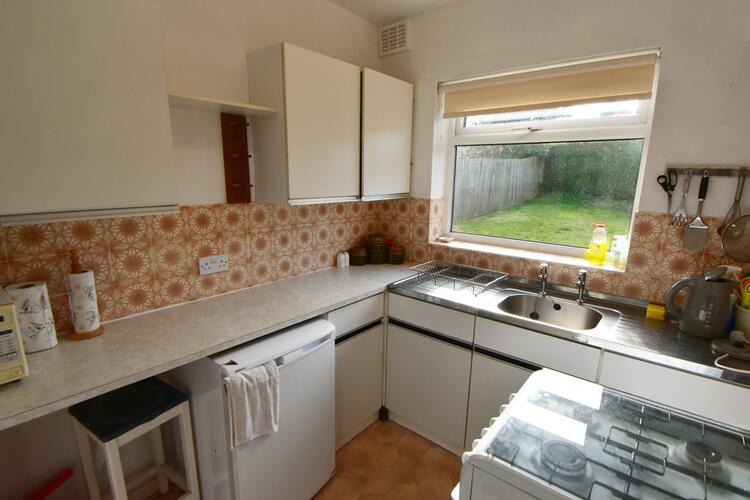 Being fitted with a range of wall and base units, laminate work surfaces, sink and drainer unit, tiling to splashback areas, space for fridge and cooker, double glazed window to rear elevation, ceiling light point and obscure glazed door leading into