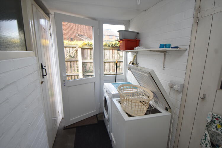 With door to garage, space for tumble dryer and freezer, double glazed window and door to side and door to