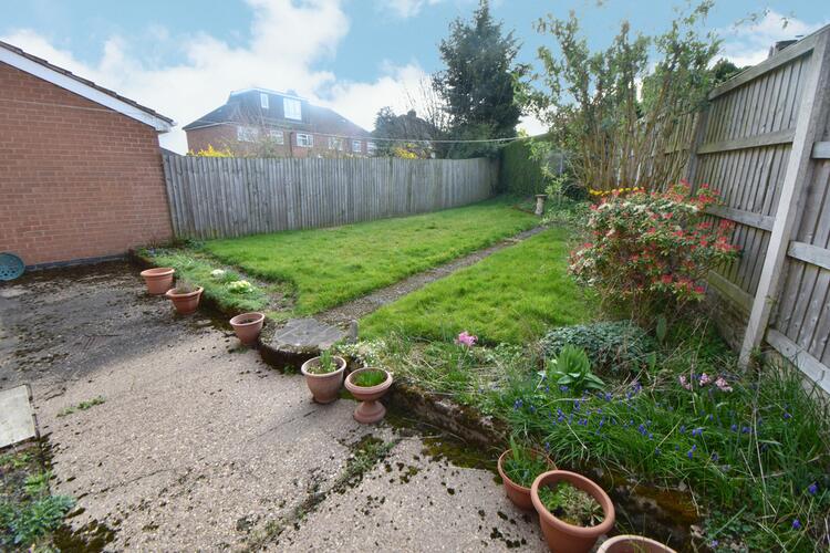With gated side entrance, lawned area, concrete patio and pathway to rear, fencing and hedgerow to boundaries and mature shrubs and bushes