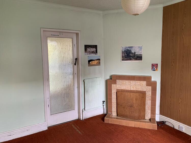 Includes radiator, skirting heater, double glazed window to front elevation, double glazed sliding doors to rear elevation into rear garden, coal fire with back boiler, and door to kitchen.