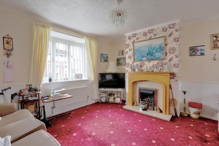 uPVC window and front door with a central heated radiator. Doors into the lounge and kitchen and access to under stairs storage.