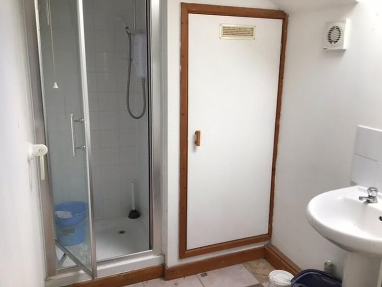 Please Note: This is an irregular shaped room. With roof light, a shower cubicle, low level wc, pedesstal wash hand basin, tiling to walls and extractor fan.