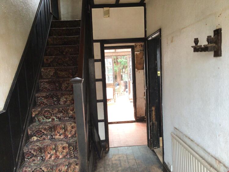 Entered by door to front, central heating radiator and staircase to first floor.