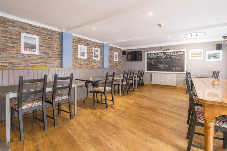 The Elan Hotel, Rhayader is set in spectacular countryside in Powys, Mid Wales. Situated in the centre of town, nestled on the banks of the River Wye and within close proximity to the Elan Valley lakes. The market town of Rhayader is a busy and historic town in the north west of the ancient County of Radnorshire. It is the first town on the banks of the River Wye and has long been a vital centre for the surrounding farming community and is now also the centre of the large tourist industry that has built up in the surrounding area especially as it is home to the spectacular dams and reservoirs of the Elan and Claerwen Valleys. The area has become popular for its numerous activities including, fishing, golf and water sport, it especially attracts walkers and cyclists for the abundance of trails and bridle ways surrounding the town acting as a gateway to the massive complex of reservoirs and dams nearby. The variety of entertainment and activities ensures a steady supply of tourists through the year, especially traditional holiday periods.
